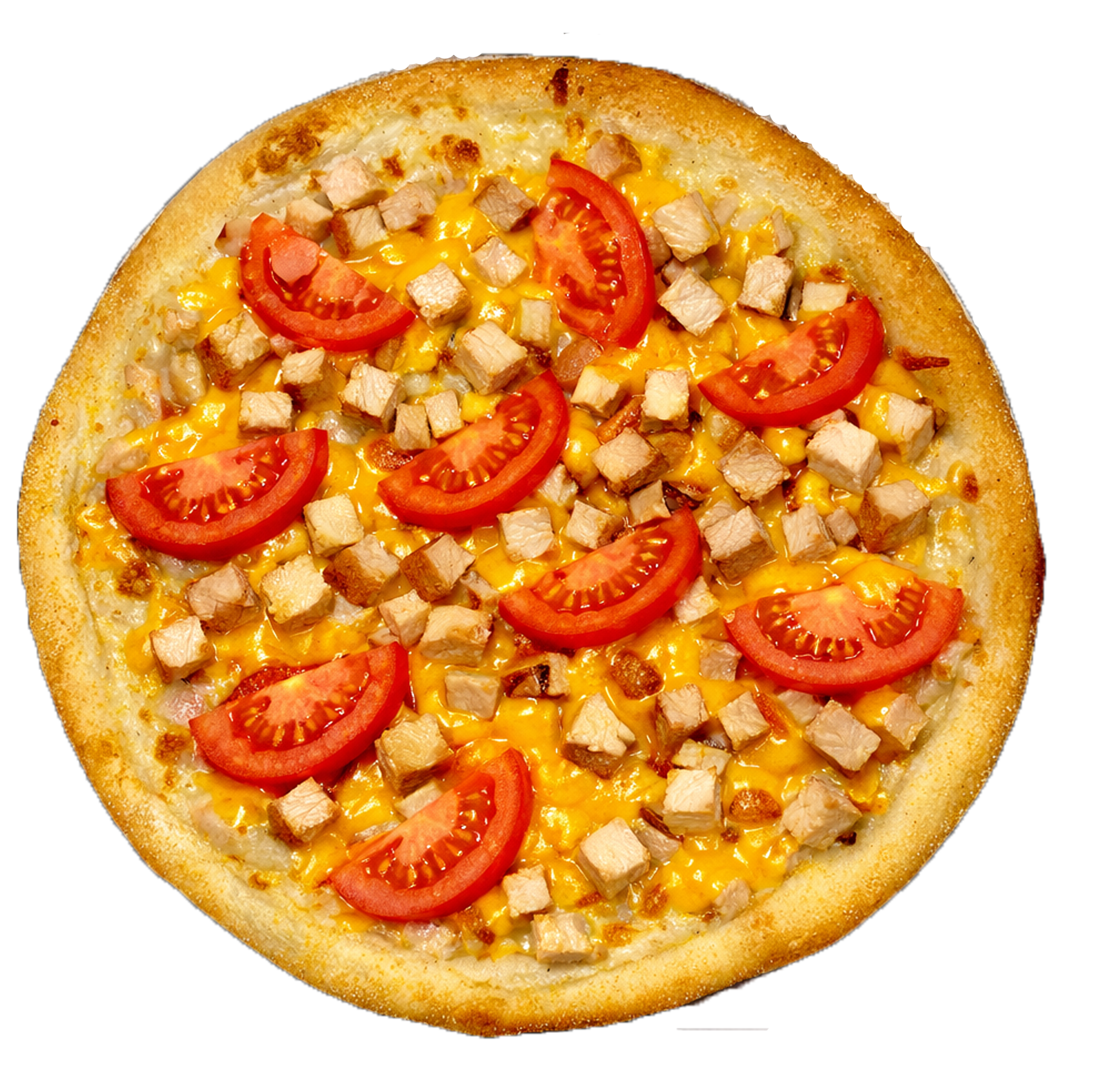 Соус вершковий, моцарела, копчена курка, сир Чеддер, помідор