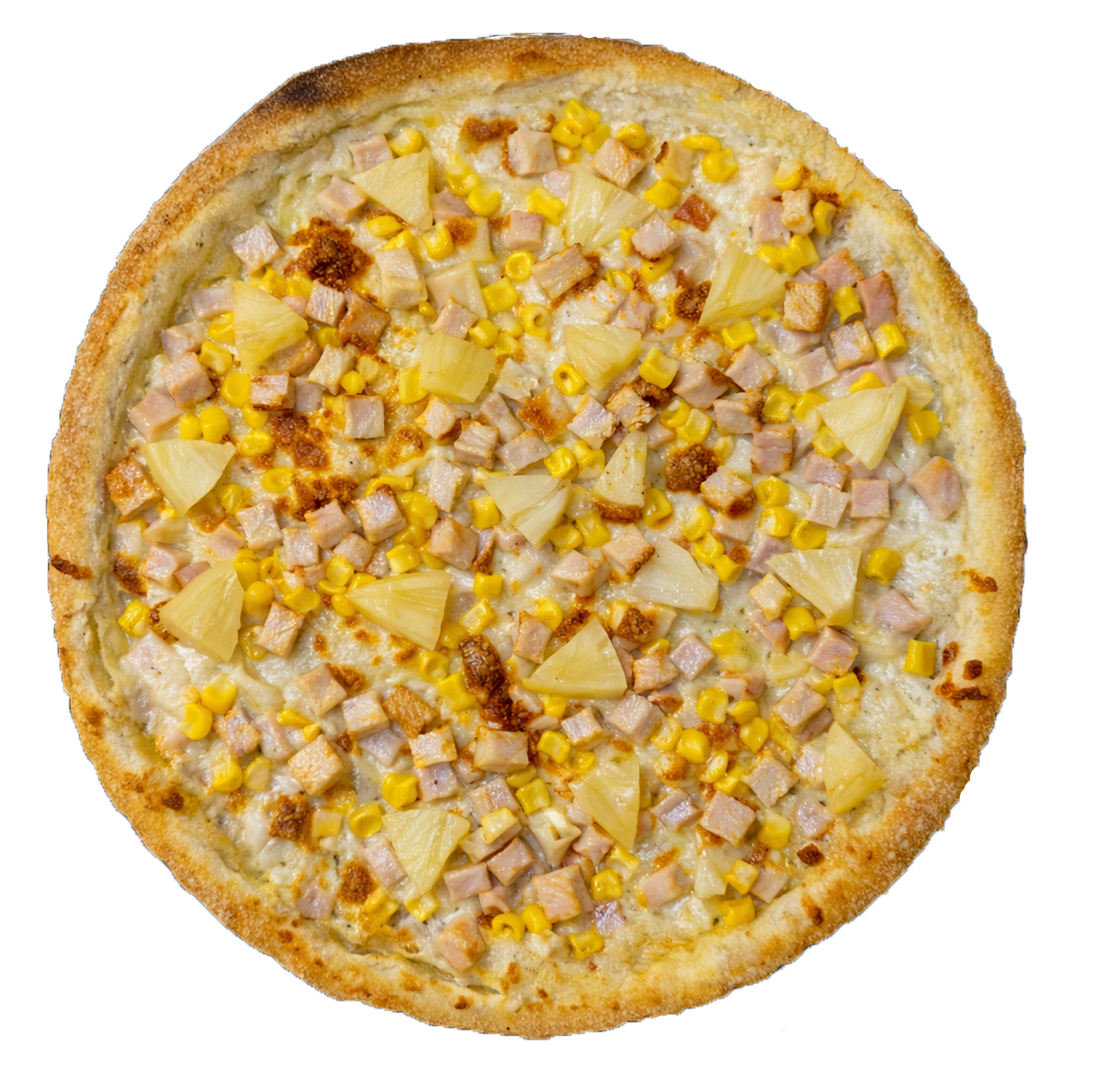Соус вершковий, моцарела, копчена курка, ананаси, кукурудза